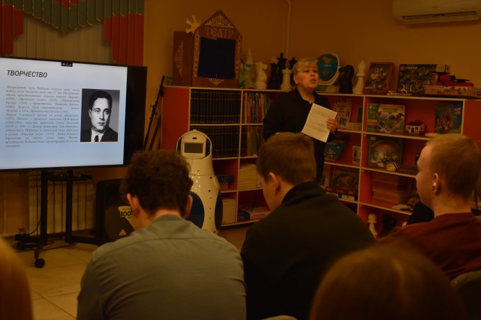 Сегодня в Детской библиотеке им. И. В. Александрова прошло мероприятие, посвящённое жизни и творчеству известного советского российского писателя Анатолия Наумовича Рыбакова. Учащиеся 9 класса школы №9 познакомились с произведениями писателя «Кортик», «Бронзовая птица», «Выстрел», «Водители», «Приключения и каникулы Кроша», «Дети Арбата», «Страх», «Прах и пепел», «Тяжёлый песок» а также с автобиографической книгой «Роман-воспоминание».