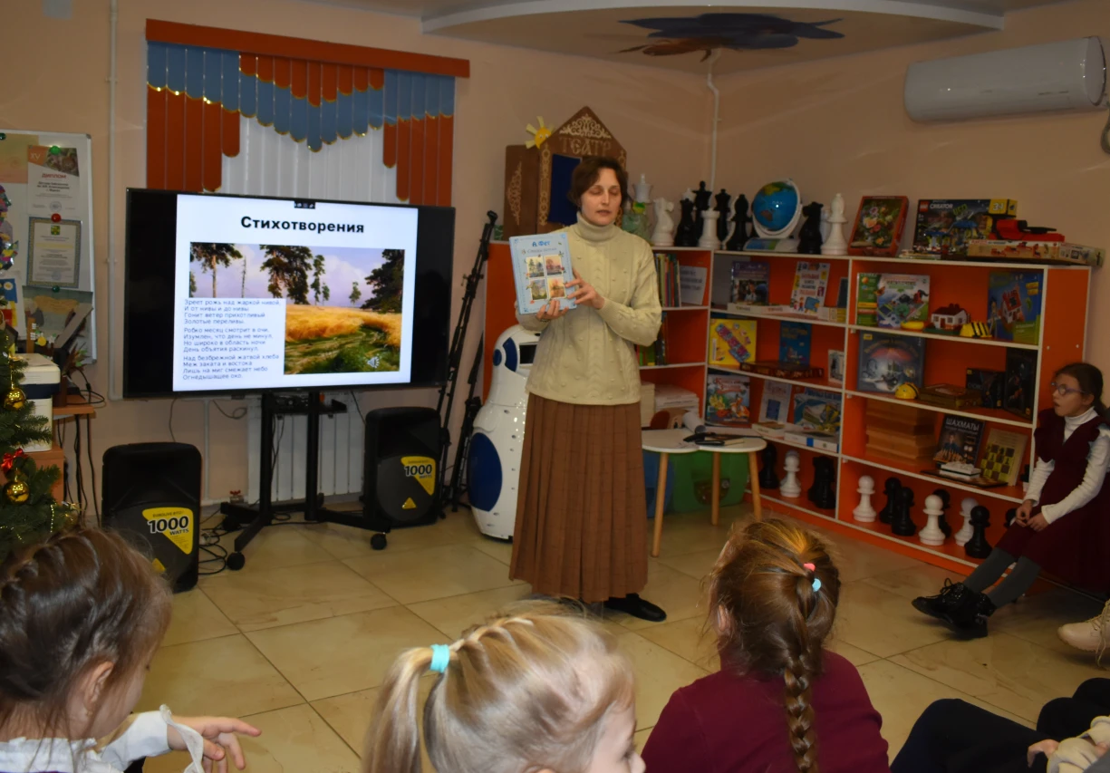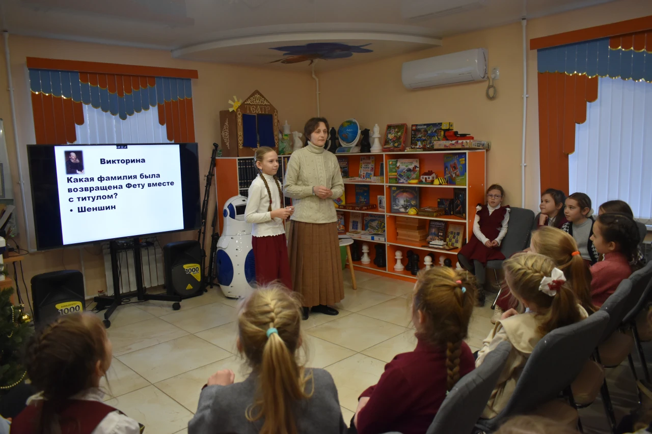 Сегодня мы встретились с учащимися 3 класса школы №9 в литературной гостиной нашей детской библиотеки для того, чтобы познакомиться с творчеством великого русского лирика Афанасия Афанасьевича Фета.