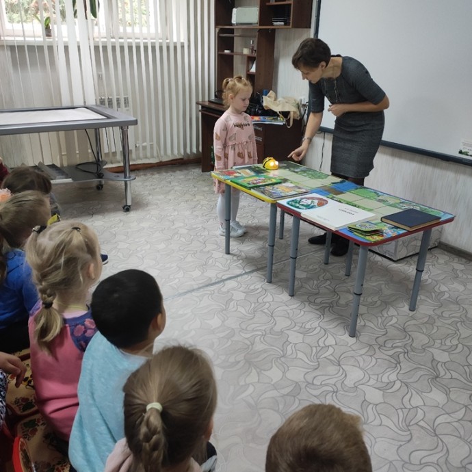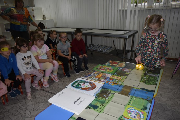 А потом маленьких исследователей ждал настоящий сюрприз! Ребята познакомились с библиотечным лого-роботом пчёлкой. Вместе с ней ребята выбирали книги, которые им больше всего приглянулись.