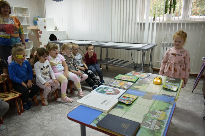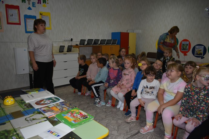 Конечно, мы не могли обойти стороной и наши книжные сокровища. Мы с ребятами с удовольствием рассматривали книги из детской библиотеки: большие и маленькие, толстые и тонкие, с яркими картинками и теми, где слова рассказывают свои истории. Мы говорили о книгах весёлых и грустных, о тех, что заставляют задуматься, и о тех, что дарят радость.