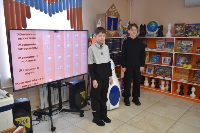 Накануне Международного женского дня мы с гостями библиотеки — учащимися 7 класса школы №9 — вспоминали самых знаменитых женщин нашей страны, достигших больших успехов в разных областях культуры, науки, искусства.