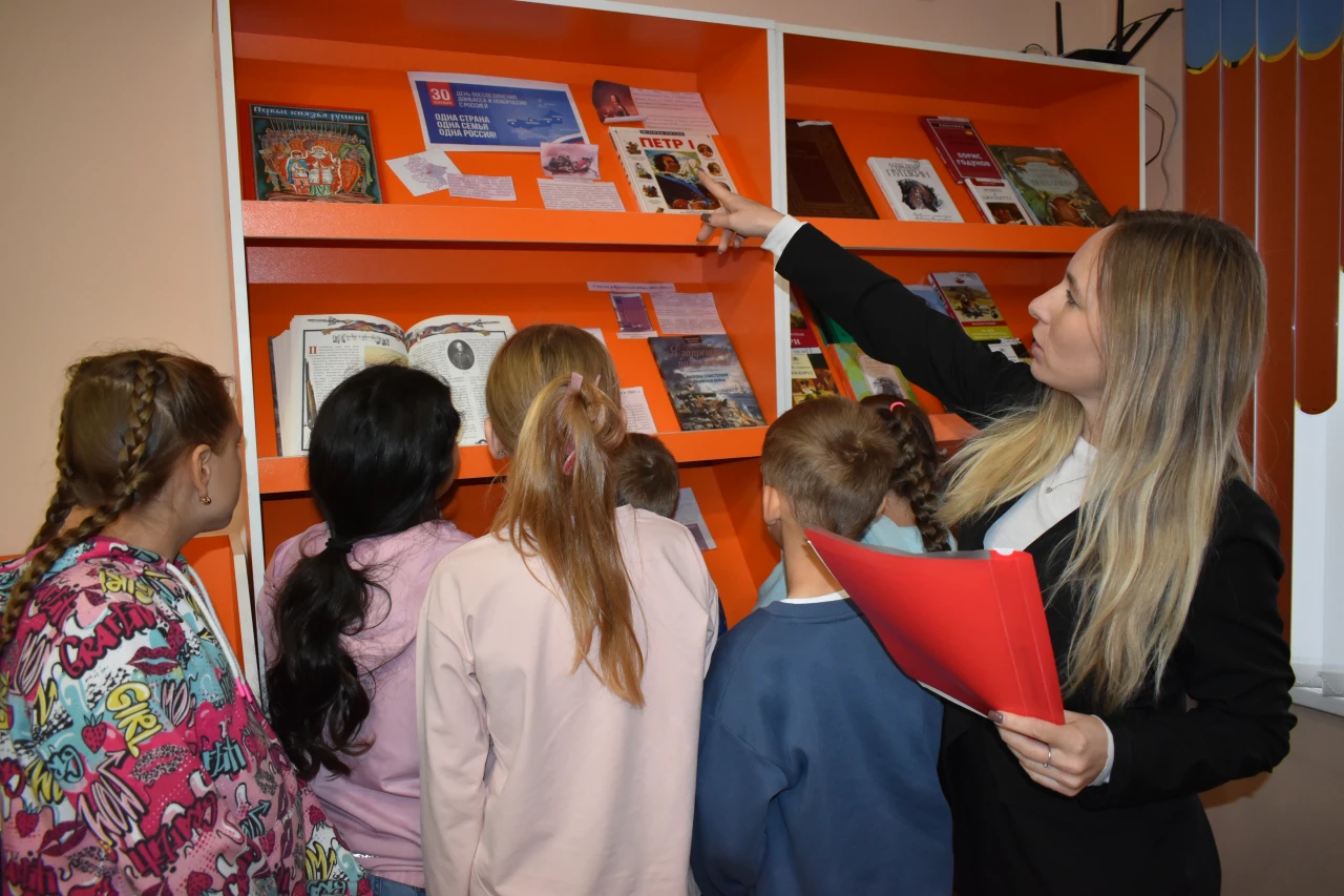 Сегодняшний день в библиотеке был посвящен важному историческому событию – Дню воссоединения России с Донбассом. У специально подготовленной к этой дате выставки мы провели беседу с нашими читателями. Дети смогли не только увидеть экспозицию, но и узнать много нового и интересного об истории Донбасса.