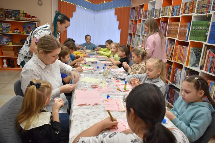 А потом к Дню Матери сделали поздравительные открытки для своих любимых мам.