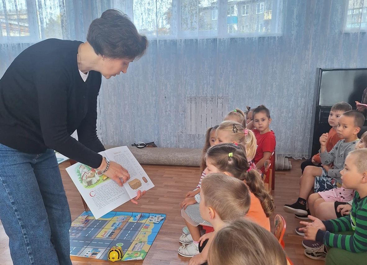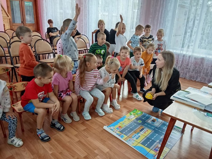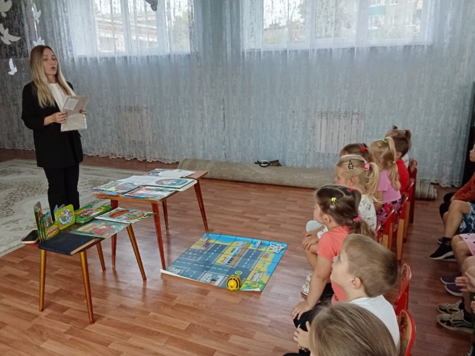 Сегодня сотрудники детской библиотеки в детском саду №9 провели час информации, посвященный безопасности на дорогах.